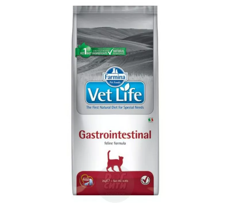 Farmina Vet Life Gastrointestinal диетическое питание для кошек, разработанное для пациентов с нарушениями процессов переваривания и всасывания в кишечнике. Способствует восстановлению процессов пищеварения благодаря повышенному содержанию электролитов и специально подобранным ингредиентам.
