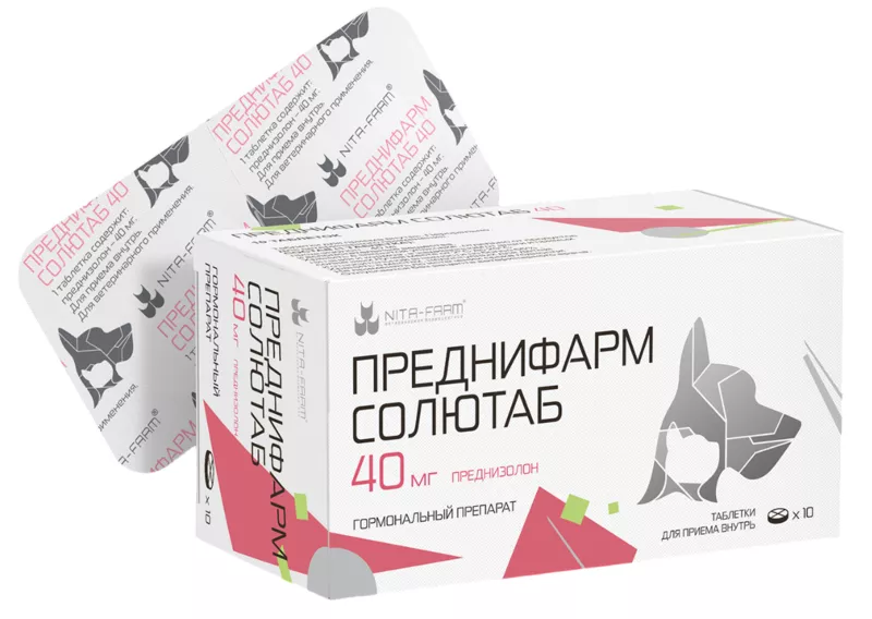 - Преднифарм Солютаб 40 животным массой тела от 20 кг.
