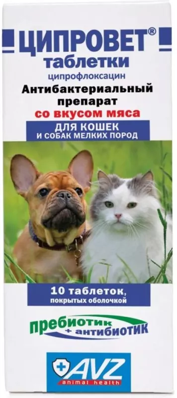 Ципровет АВЗ антибактериальный препарат для кошек и мелких собак
