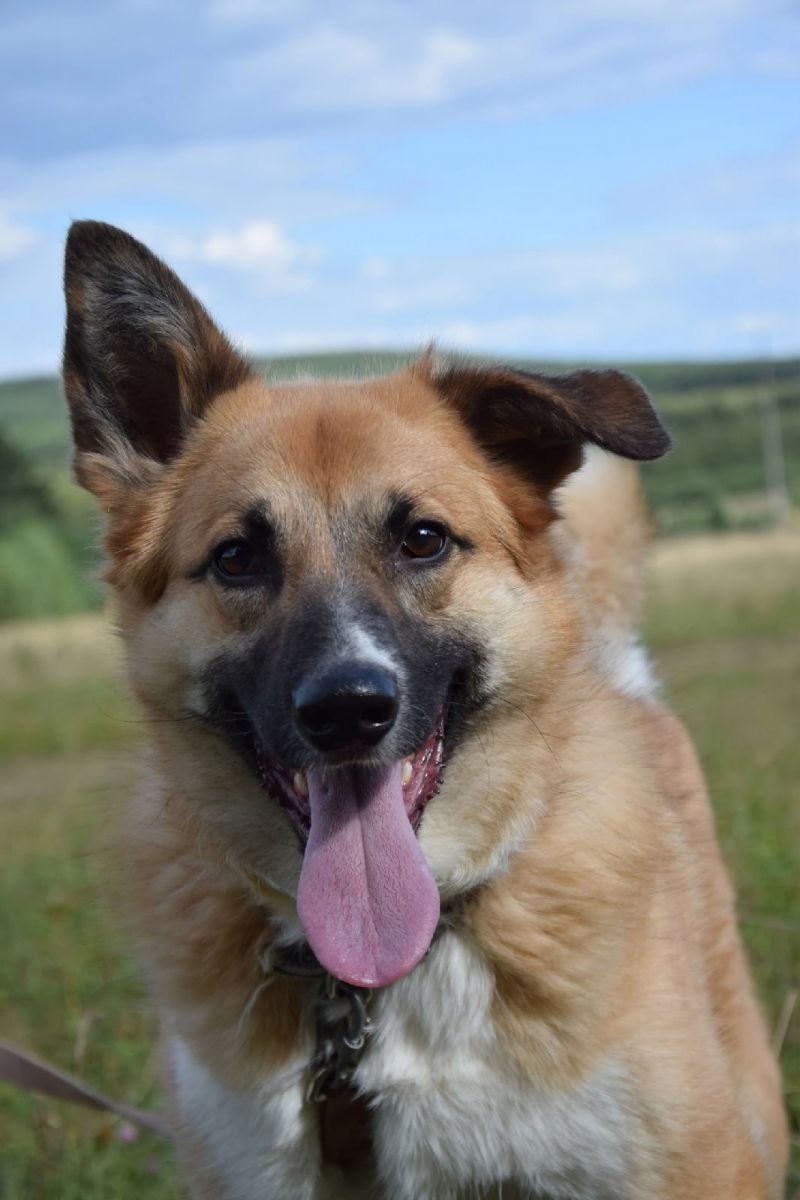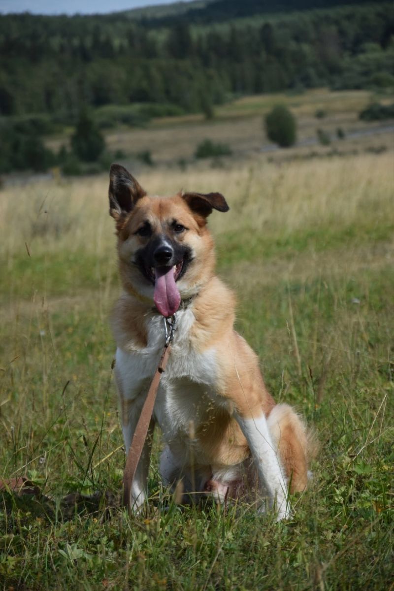 Собака средних размеров. Примерно с лайку средних размеров. Красавец!