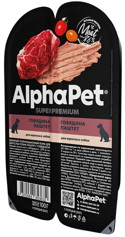 AlphaPet Superpremium паштет с говядиной, АльфаПет