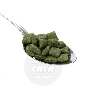 Состав: злаки, продукты растительного происхождения, минеральные вещества, хлорофилл, мясо птицы и продукты животного происхождения.