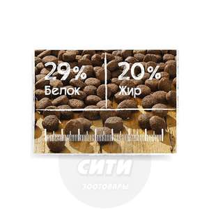 Состав: Протеин – 29%, жир – 20%. Источники белка: животный белок – 85% (мясо птицы – 75%, рыба – 10%), растительный белок – 15%.