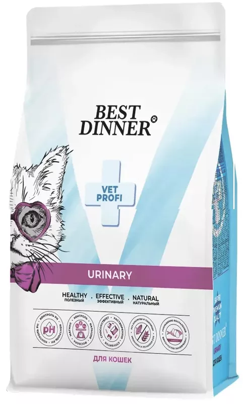 Полнорационный диетический cухой корм Бест Диннер для кошек при струвитном уролитиазе с поддержанием здоровья мочевыводящих путей.