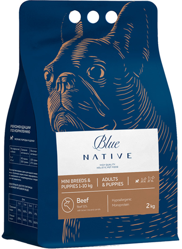 Blue Native Holistic сухой корм для собак мелких пород и щенков говядина.