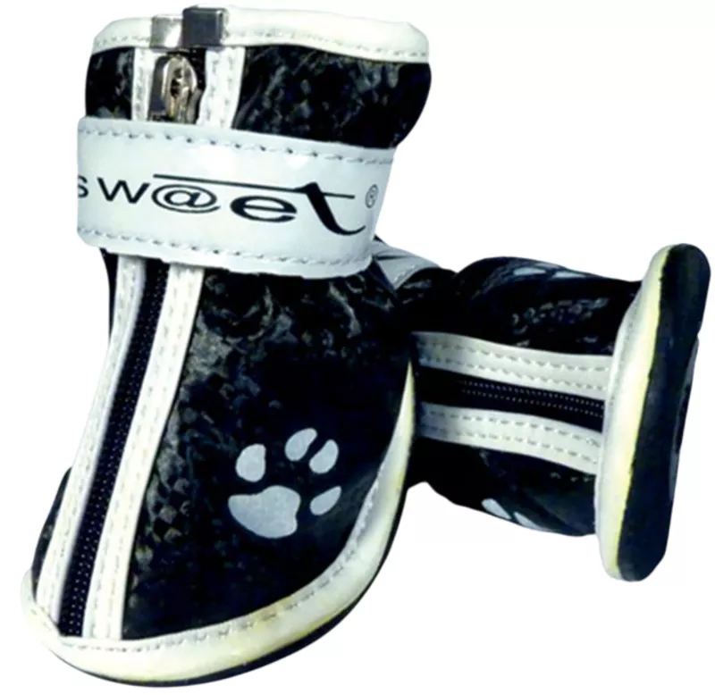 Комплект ботинок Триол для собак с модным принтом и функциональной прорезиненной подошвой - незаменимый аксессуар индивидуальной защиты лап животного от воздействия агрессивных жидкостей, дорожных химреагентов, бензинов и масел на проезжей части дорог.