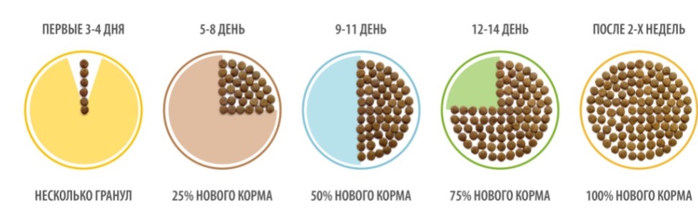 Важно: при вводе нового корма смешайте его небольшое количество с привычной едой и в течение нескольких дней постепенно увеличивайте количество нового корма. Следуйте рекомендациям по ежедневному питанию, представленным в таблице. Количество корма может меняться в зависимости от таких факторов, как возраст и уровень активности.
