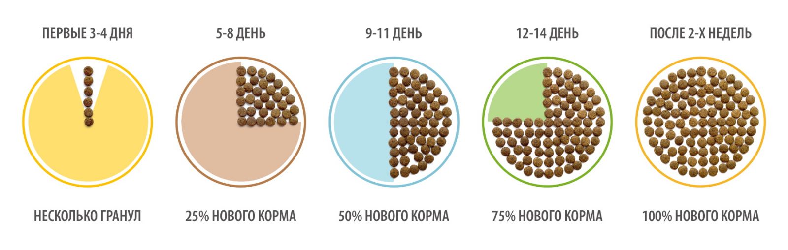 Важно: при вводе нового корма смешайте его небольшое количество с привычной едой и в течение нескольких дней постепенно увеличивайте количество нового корма. Cледуйте рекомендациям по ежедневному питанию, представленным в таблице. Количество корма может меняться в зависимости от таких факторов, как возраст и уровень активности.