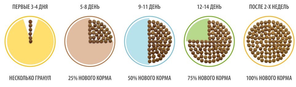 Важно: При вводе нового корма смешайте его небольшое количество с привычной едой и в течение нескольких дней постепенно увеличивайте количество нового корма. Следуйте рекомендациям по ежедневному питанию, представленным в таблице. Количество корма может меняться в зависимости от таких факторов, как возраст и уровень активности.