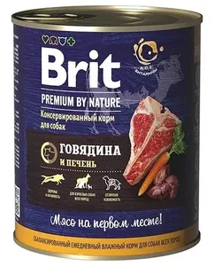 Брит Premium Adult Dog консервы говядина и печень, Brit