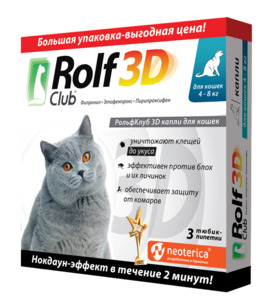 Рольф Клуб капли от блох и клещей для кошек от 4 кг, Rolf Club