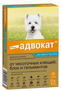 Есть в наличииДоставим сегодня Адвокат капли от блох и клещей для собак. Цена за 1 пипетку.