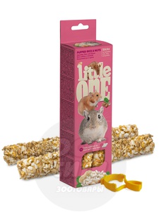 Есть в наличииДоставим сегодня Лакомства Литл Уан палочки для хомяков, крыс, мышей и песчанок с воздушным рисом и орехами. Фасовка: 2*55 г.