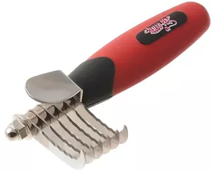 • стриппер – инструмент прореживания шерсти у собак, у которых ее чересчур много, например бобтейлов или хаски, которым в густой шубе жарко, неудобно в квартире. Также стриппером можно удалять волнистую шерсть там, где ее по стандарту быть не должно, например, на крупе прямошерстных собак, овчарок, лабрадоров, ротвейлеров;