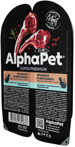 AlphaPet Superpremium Ягненок и брусника Мясные кусочки в соусе для кошек c чувствительным пищеварением, АльфаПет