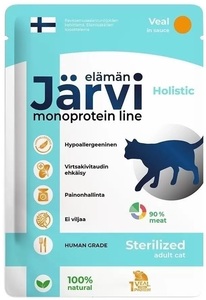 Пауч Ярви монопротеиновый для стерилизованных кошек и кастрированных котов кусочки в соусе Телятина, Jarvi