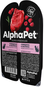 AlphaPet Superpremium Говядина и малина Мясные кусочки в соус, АльфаПет