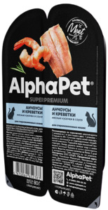 AlphaPet Superpremium Анчоусы и креветки Мясные кусочки в соусе для стерилизованных кошек, АльфаПет