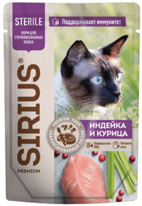 Sirius для стерилизованных кошек Индейка с курицей, Сириус
