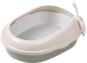 Нет в наличии Туалет для кошек овальный с бортом, в комплекте с совком и сеткой.Размер туалета: 500*370*170мм.