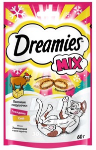 Вискас лакомые подушечки Dreamies MIX с говядиной и сыром, Whiskas
