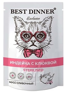Best Dinner Exclusive Sterilised индейка с клюквой для кошек, Бест Диннер