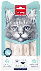 Wanpy Cat Лакомство для кошек Нежное пюре из тунца и трески, Ванпи