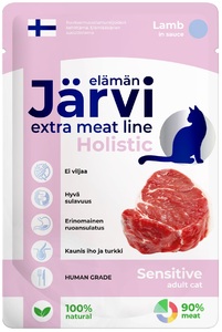 Пауч Ярви Экстра для кошек с чувствительным пищеварением кусочки в соусе Ягненок, Jarvi Extra meat line