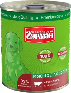 Четвероногий Гурман Мясное ассорти с Говядиной для щенков