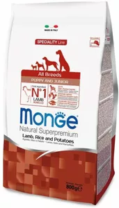 Нет в наличии Монж, сухой корм для щенков всех пород (2-12 мес) с ягненком и рисом, картофелем. Фасовки:800 гр, 2.5 кг