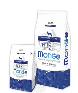 Нет в наличии Монж Медиум для взрослых собак средних пород (10 - 32кг) с курицей и рисом. Фасовка: 3 кг.