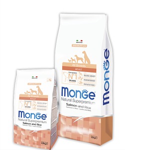 Нет в наличии Монж Спешал, сухой корм для взрослых собак всех пород с лососем и рисом. Фасовка: 2,5 кг, 12 кг.