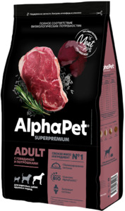 AlphaPet Superpremium с Говядиной и потрошками для собак крупных пород, АльфаПет