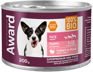 Паштет для щенков Award из индейки с грушей, Авард