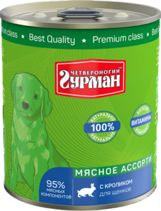 Нет в наличии Гурман Мясное ассорти, консервы для щенков. Вес: 340 г.