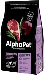 AlphaPet Superpremium с Бараном и потрошками для собак средних пород с чувствительным пищеварением, АльфаПет