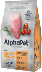 AlphaPet Superpremium Monoprotein из Индейки для собак средних и крупных пород, АльфаПет