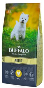 Нет в наличии Сухой корм Буффало для взрослых собак мелких пород. Фасовка: 0,8 кг, 2кг. Вкус: курица.