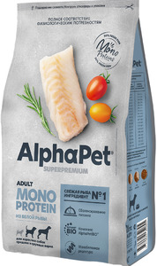 AlphaPet Superpremium Monoprotein из Белой рыбы для собак средних и крупных пород, АльфаПет