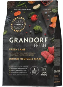 Grandorf Fresh Ягненок с бататом для юниоров средних и крупных пород, Грандорф Беззерновой корм с живыми пробиотиками