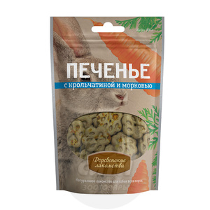 Есть в наличииДоставим сегодня "Деревенские лакомства" печенье с мясом кролика и морковью для собак. Фасовка: 100 гр