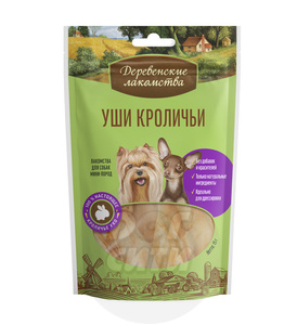 Есть в наличииДоставим сегодня "Деревенские лакомства" натуральные уши кролика для собак мини-пород. Фасовка: 15 гр.