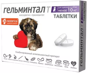 Есть в наличииДоставим завтра Таблетки для профилактики и лечения при нематодозах для щенков и собак мелких пород.Фасовка: 1 таблетка, 2 таблетки.