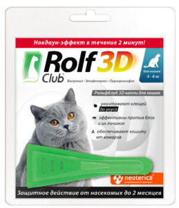 Рольф Клуб капли от блох и клещей для кошек до 4 кг, Rolf Club