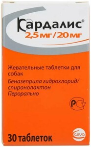 Нет в наличии Препарат для лечения проявлений застойной сердечной недостаточности у собак. Действующее вещество: 2,5 мг. В упаковке: 100 таблеток.