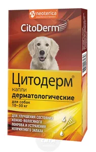 Есть в наличииДоставим сегодня Капли Цитодерм дерматологические для собак 10–30 кг, 4 пипетки по 3 мл