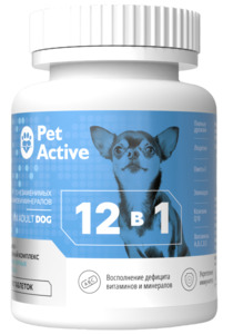 Витаминно-минеральный комплекс ПетАктив 12 в 1 для миниатюрных пород собак, PetActive