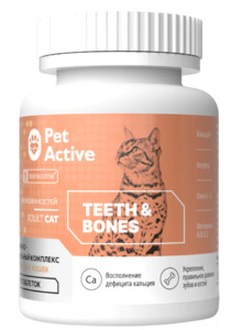 Витаминно-минеральный комплекс ПетАктив для укрепления зубов и костей кошек, PetActive