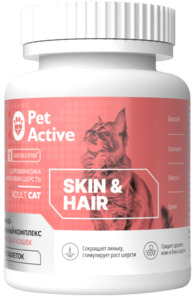 Витаминно-минеральный комплекс ПетАктив для взрослых кошек для поддержания здоровой кожи и красивой шерсти, PetActive