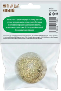 Эксклюзивная игрушка — лакомство для кошек из кошачьей мяты. Играть в нее не надоест никогда. В состав входят только кошачья мята и пчелиный воск. Благодаря пчелиному воску, мята в шаре всегда остается свежей и, при каждом ударе лапой, запах становится сильнее.
